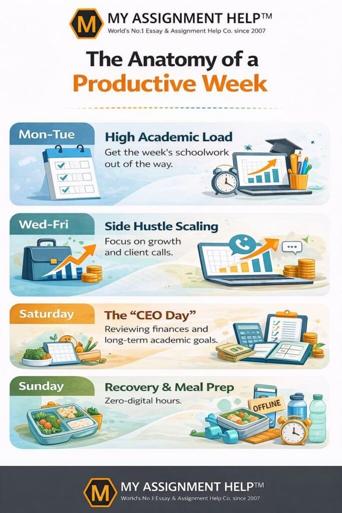 - The Secret: Use your biological peak (usually 10 PM – 1 AM or 8 AM – 11 AM) for your side hustle’s “Deep Work.”